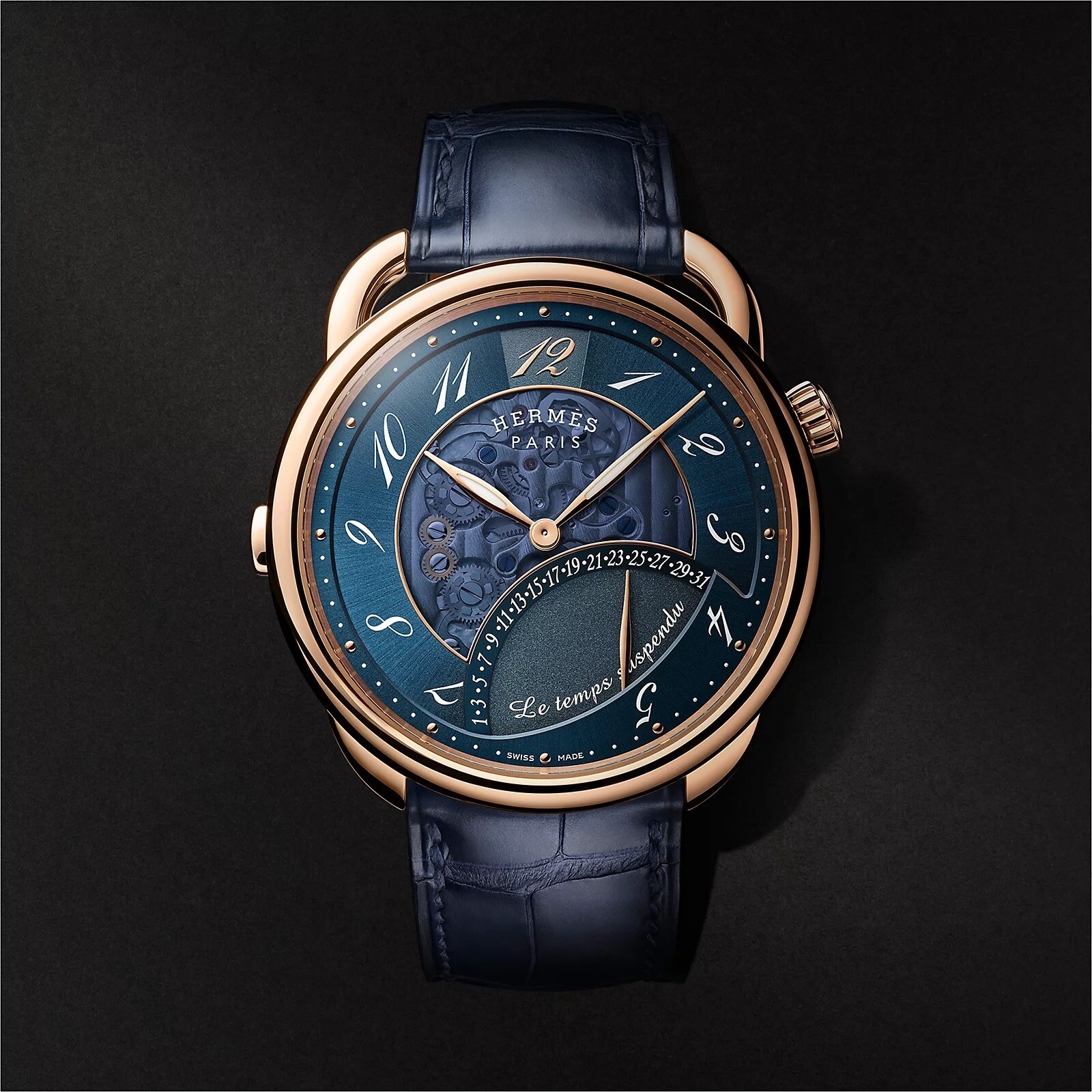Collection “Arceau” signée Hermès dotée de la complication « Temps Suspendu », offrant une expérience singulière du temps, boîtier 42 mm, mouvement Manufacture. Découvrez comment, lorsqu’on aime, le temps s’arrête ....